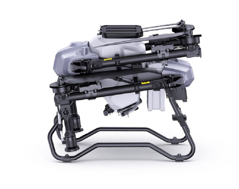 Drone agricole haute capacité avec une charge utile maximale de 28 kg, équipé d'un système de pulvérisation de 20 L (buses centrifuges) et d'un épandeur de 30 L pour les semences/engrais. Conception à quatre rotors avec une puissance moteur de 5760 W assurant un vol stable. Ce drone agricole se replie à 622 × 813 × 719 mm pour faciliter le transport. Ce drone agricole est idéal pour la protection des cultures à grande échelle et l'agriculture de précision en plein champ.