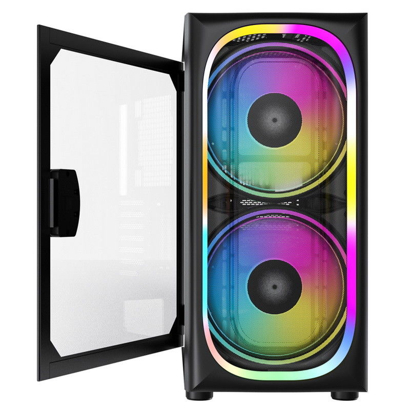 ATX Mid Tower étui pour ordinateur de jeu 2x200MM ARGB étui d'éclairage LED Ventilateurs synchronisés avec carte mère Côté et avant verre trempé